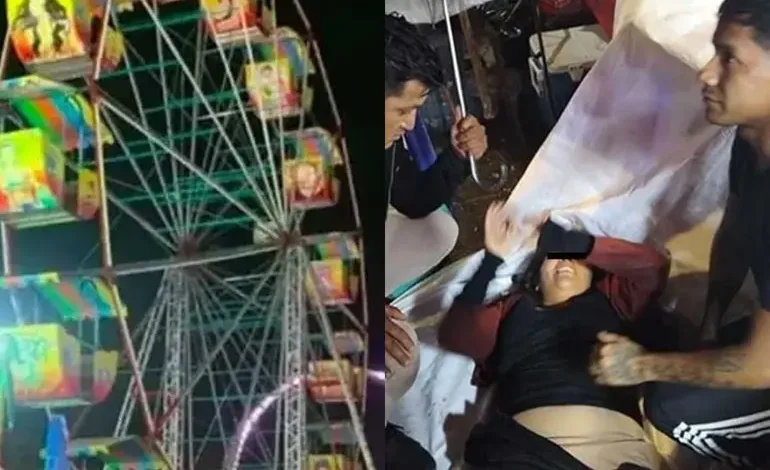 Una mujer cayó desde una rueda de la fortuna durante la feria patronal de San Miguel Canoa, en Puebla, luego de salir proyectada de su asiento por causas aún no esclarecidas.