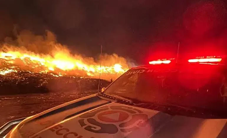 Elementos de Protección Civil atienden el reporte de un incendio en el basurero de SIMEPRODE donde se consume material combustible sólido.