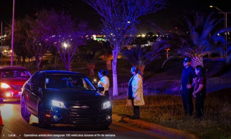 Operativos antialcohol aseguran 100 vehículos durante el fin de semana