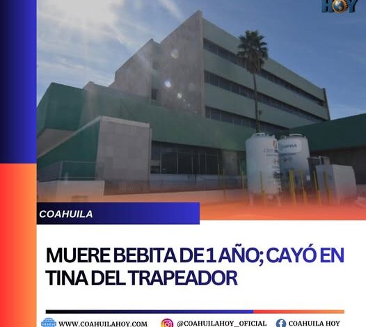 Una tragedia conmocionó a la comunidad de Frontera, Coahuila, luego de que una bebita de apenas un año y un mes perdiera la vida tras caer accidentalmente dentro de una tina con agua sucia que su abuela utilizaba para trapear.