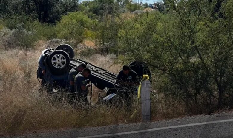 El exceso de velocidad provocó que perdieran el control del Mini Cooper, salieran de la carpeta asfáltica y terminaran volcados.
