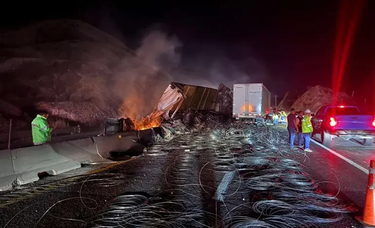 Tras el incendio de uno de los tráileres, tres vehículos de carga pesada resultaron afectados y se reportaron tres personas lesionadas.