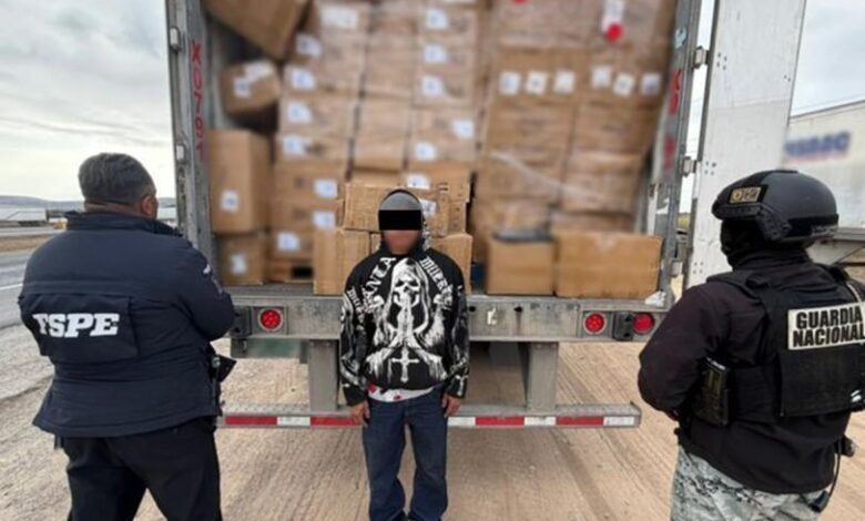 La Policía Estatal de Caminos, en coordinación con la Guardia Nacional, aseguró un tráiler que transportaba 24 toneladas de aparatos electrónicos de origen chino, presuntamente introducidos de manera ilegal a México. La carga fue valuada en aproximadamente 5 millones de pesos, informó la Secretaría de Seguridad y Paz.