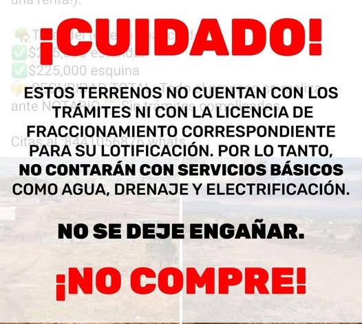 Aunque la publicación señala que todo el proceso se realiza ante notario y sin trámites complicados, la Dirección de Desarrollo Urbano exhortó a la ciudadanía a que, antes de realizar cualquier compra de terrenos, verifique que los predios cuenten con las autorizaciones y licencias correspondientes ante esta dependencia, a fin de evitar afectaciones a su patrimonio.