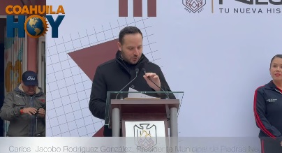 PIEDRAS NEGRAS, COAH.– Durante la ceremonia de honores a la bandera realizada en la Escuela Primaria Miguel Hidalgo y Costilla, el alcalde de Piedras Negras, Carlos Jacobo Rodríguez González, refrendó su compromiso con la educación pública y con el fortalecimiento de espacios dignos para la niñez nigropetense, al hacer entrega de un apoyo económico de 60 mil pesos destinado a la remodelación de los baños del plantel.