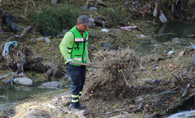 Por instrucción del alcalde Javier Díaz González, personal de la Dirección de Medio Ambiente y Desarrollo Sustentable retiró basura, maleza, lodo y desechos acumulados en el cauce, con el propósito de mejorar el flujo del agua pluvial y reducir el riesgo de encharcamientos, desbordamientos e inundaciones durante la temporada de lluvias, en el tramo que comprende entre los bulevares Otilio González y Carlos Abedrop Dávila, a la altura de la colonia San Ramón Ampliación.