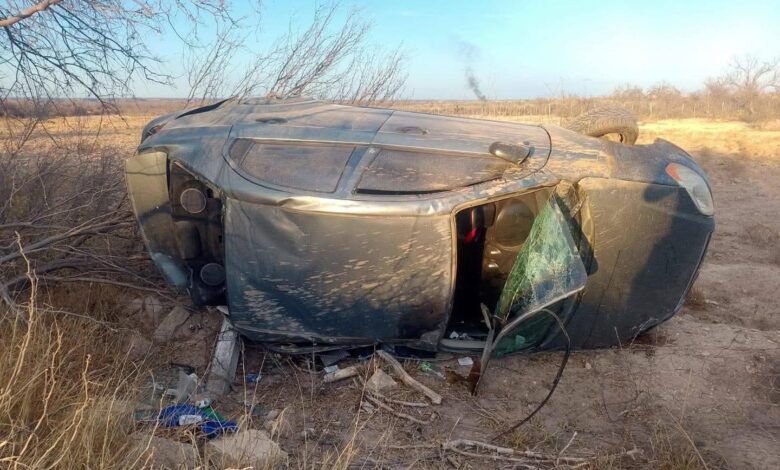 Al llegar al lugar, los oficiales encontraron un vehículo Chevrolet Aveo 2009 verde, con placas de Coahuila, volcado sobre su toldo. El conductor, Erick Alejandro Ramírez Almaguer, fue atendido por paramédicos de Protección Civil de Jiménez, quienes no reportaron lesiones ni fallecimientos.