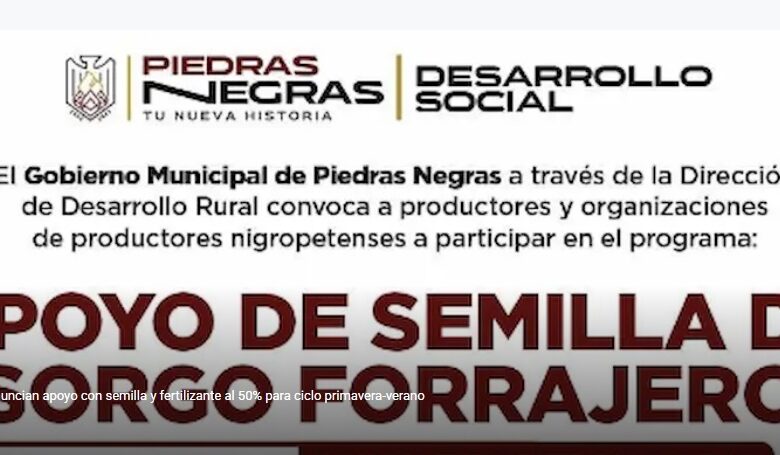 Daniel Herrera | Piedras Negras, Coahuila; 14 de febrero de 2026. 鈥斅Para el ciclo agr铆cola primavera-verano ya se encuentra listo el programa de apoyo con semilla de sorgo forrajero y fertilizante subsidiado, inform贸 el Director de Desarrollo Rural, Arnoldo Guajardo.