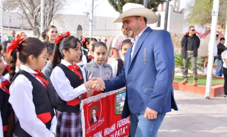 El acto cívico estuvo a cargo de alumnos de quinto grado de la Escuela Primaria Escuela Primaria Emiliano Zapata, quienes participaron en los honores a la bandera y presentaciones alusivas a la fecha.