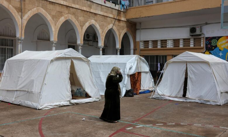 Civiles desplazados en Líbano buscan refugio mientras continúan los bombardeos de Israel.REUTERS