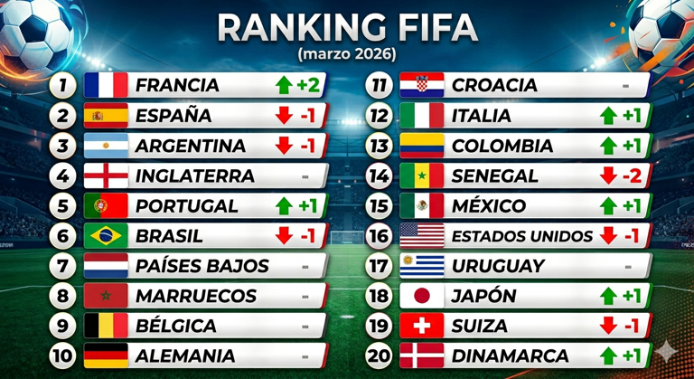 Resumen y cambios en ranking FIFA de marzo 2026
