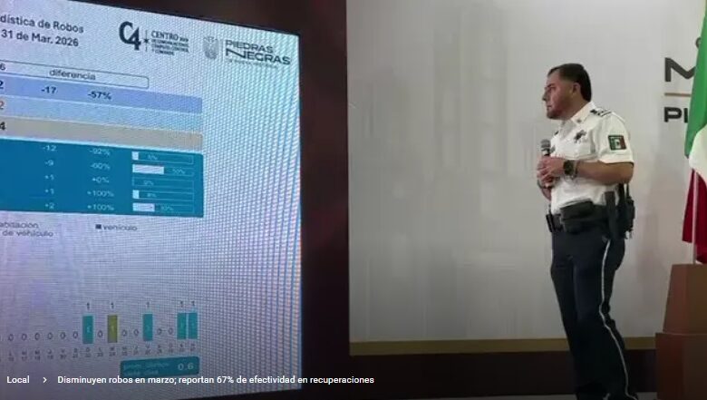 Disminuyen robos en marzo; reportan 67% de efectividad en recuperaciones
