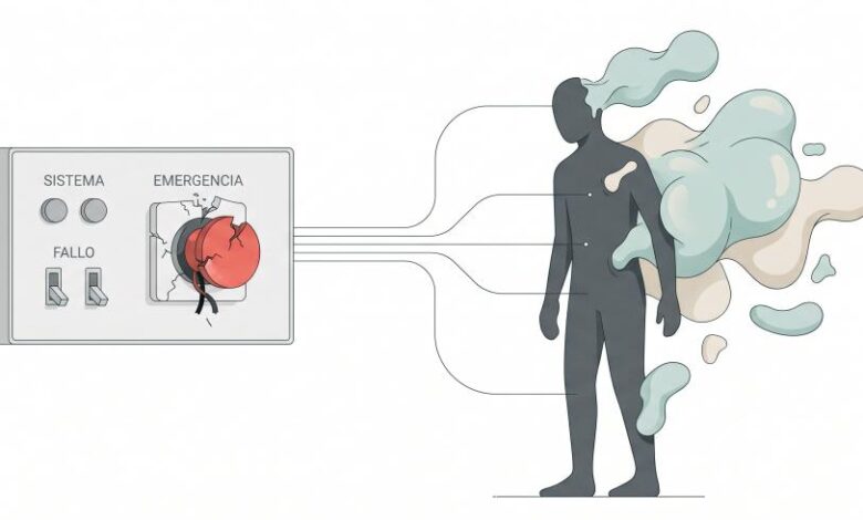 Cuando ese botón de frenado falla, se libera un mensajero químico llamado bradicinina, que corre por el sistema dándole una orden desastrosa a tus tuberías (los vasos sanguíneos): “vuélvanse porosas”. En ese momento, tus mangueras biológicas empiezan a “sudar” y a filtrar líquido hacia afuera, inundando los tejidos circundantes como si el agua se filtrara detrás del tablarroca de una habitación.