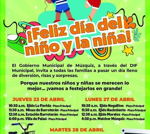 El Gobierno Municipal de Múzquiz, a través del DIF Municipal, invita a todas las familias a celebrar a nuestras niñas y niños con días llenos de alegría, juegos y sorpresas.