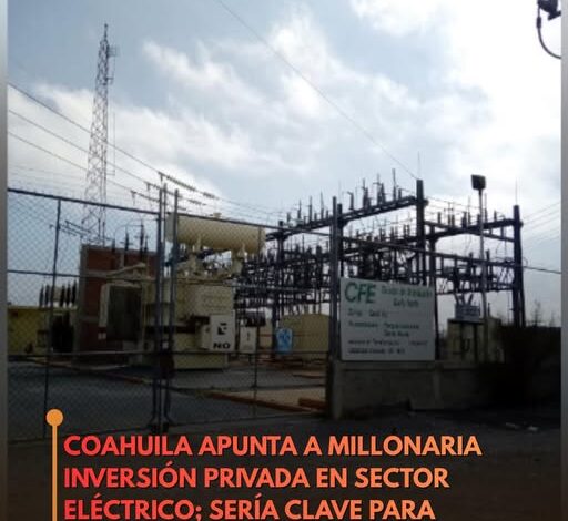 Coahuila podría convertirse en uno de los principales destinos de inversión privada en materia eléctrica durante los próximos años, impulsado por la creciente demanda energética del corredor industrial del norte del país.