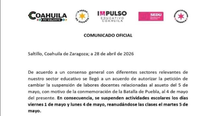 Señaló que estas suspensiones están establecidas oficialmente, por lo que estudiantes y personal docente deberán atender las indicaciones conforme al calendario vigente.