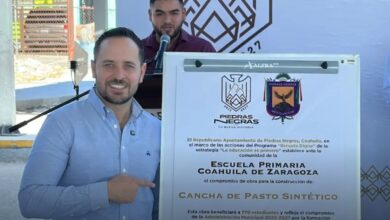 Nava, Coahuila.- Como parte de las acciones para mejorar los espacios deportivos del municipio, se realiza el reemplazo de la malla perimetral en la canchita de la colonia Manantial.