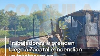 Trabajadores le prenden fuego a Zacatal e incendian un tractocamión